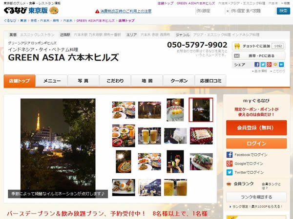 当ページに掲載されている情報は、前年以前のものです<開催期間以外は前年以前の情報です>六本木ヒルズのヒルサイドB1にあるエスニックレストランで、タイ・ベトナム料理などが食べられる。テラス席から東京タワー・毛利庭園を眺めながらビールを飲むことができる。