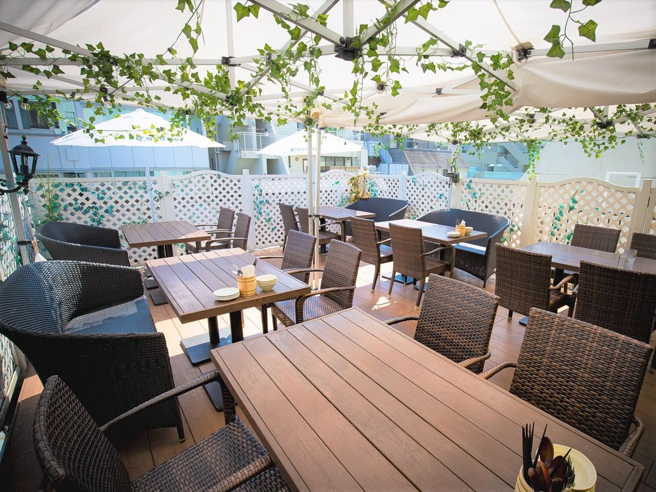 五反田駅からすぐの飲食店が多く集まる通りにあり、通年営業の店内に隣接する広いウッドデッキテラスが会場となっている。屋根付きエリアもあるので梅雨時でも安心。