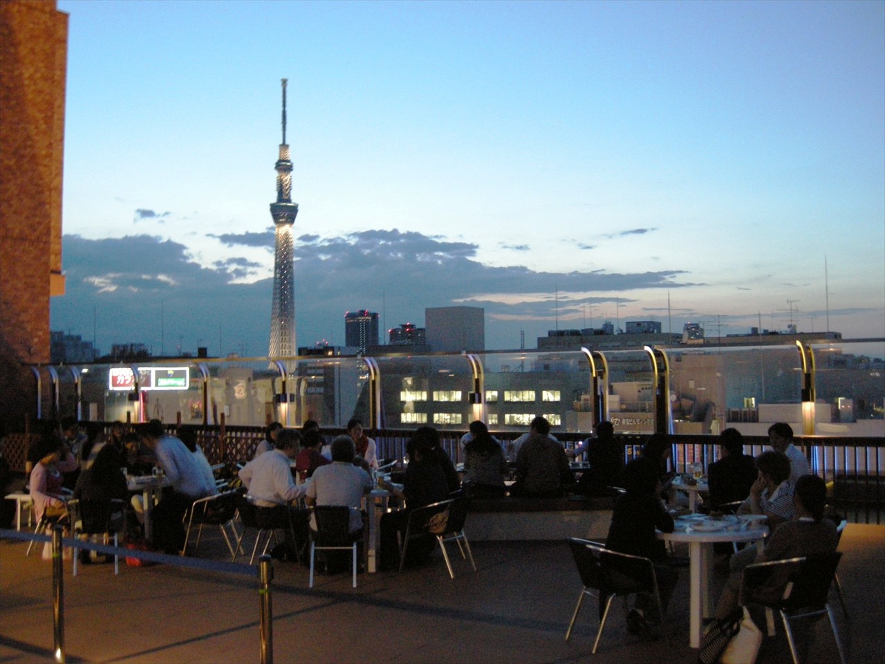 そびえ立つ高層ビル群を見上げ飲むビールは大都会・東京ならでは!