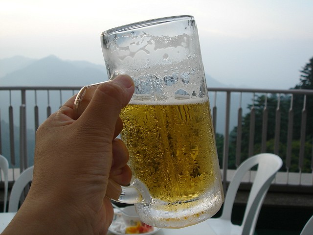 高尾山の山頂、標高500メートル上ある大人気のビアガーデン。奥秩父連山など周辺の山々を眺め、あるいは八王子や立川の夜景を眺め、空気のきれいな場所でゆったりとビー...
